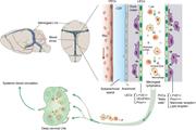 Figure 2. Meningeal lymphatic vasculature and brain mural LECs. Localization and distribution of LVs in dura matter of mouse brain. Cerebrospinal fluid (CSF) and interstitial fluid of brain parenchyma drain into meningeal LVs and reach the deep More about this image found in Meningeal lymphatic vasculature and brain mural LECs. Localization and dis...