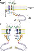 Figure 2. Topology of AMPARs. (A) Structure of a homotetrameric AMPAR composed of GluA2 subunits (PDB accession no. 5WEO ) in surface representation viewed parallel to the membrane. Synaptic and cytosolic spaces around the membrane (gray bars) More about this image found in Topology of AMPARs. (A) Structure of a homotetrameric AMPAR composed of Gl...