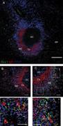 image (out of three splenic samples analyzed) of a GC surrounded by densely distributed IgD+CD27− naive cells forming the corona and the MZ at the periphery, occupied by CD27+IgDlow B cells (lightly colored in purple; splenic section of a 4-yr-old child; bar More about this image found in Non-lymphoid DLL1+ cells are located in the splenic MZ. Confoca...